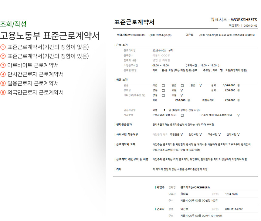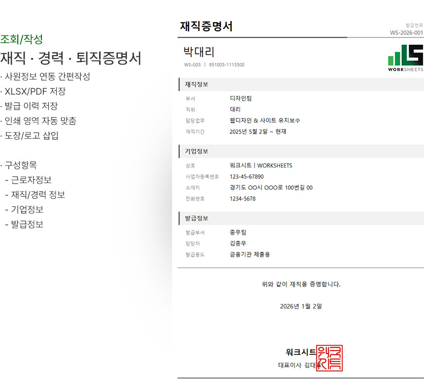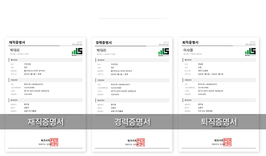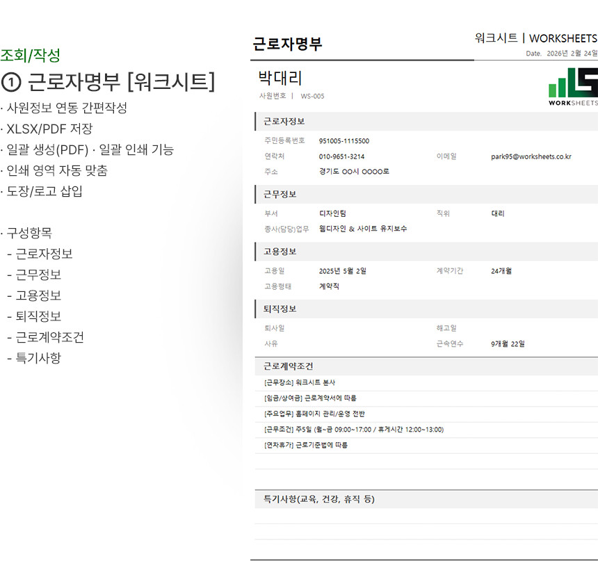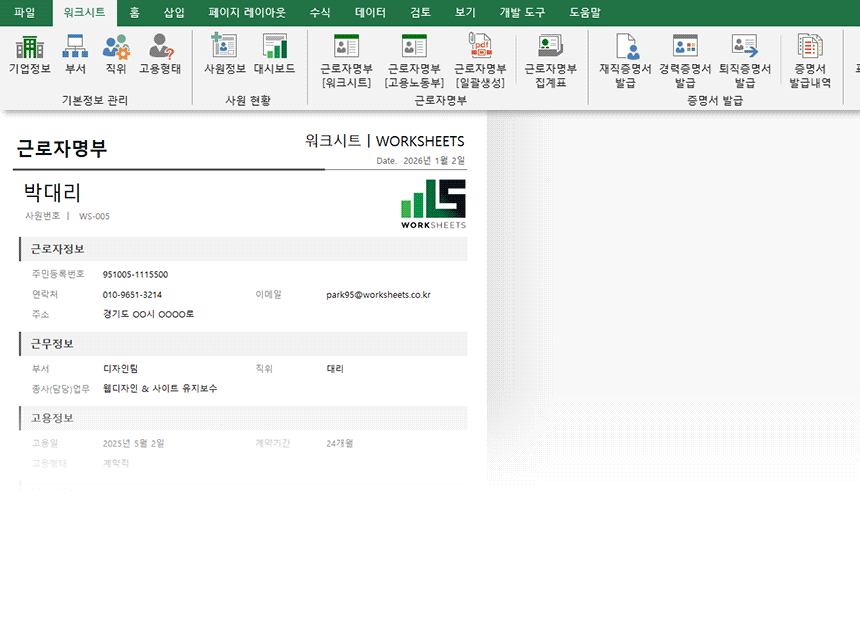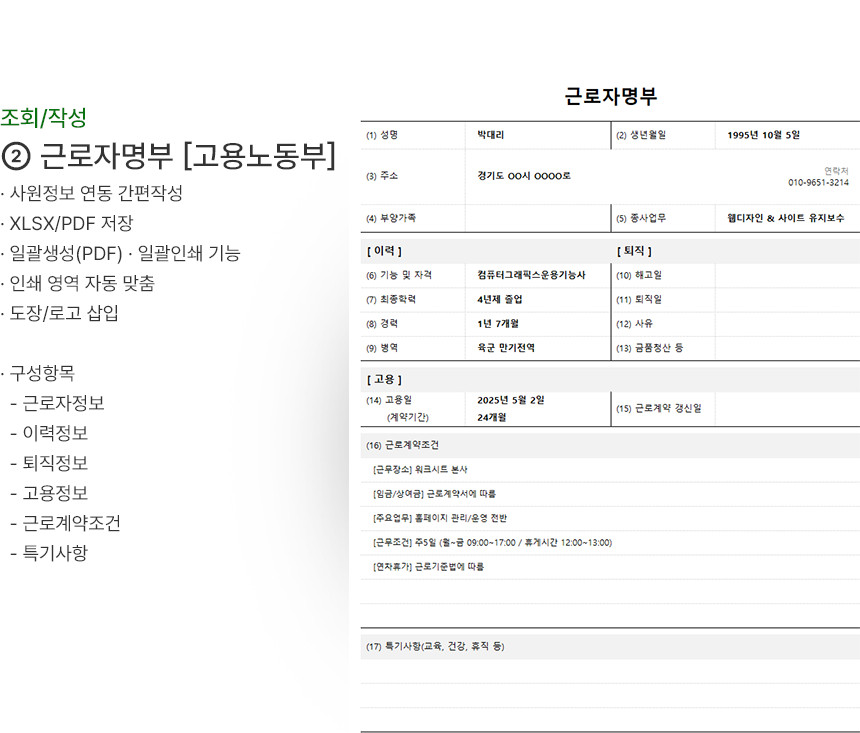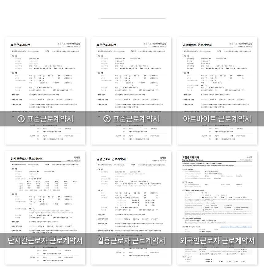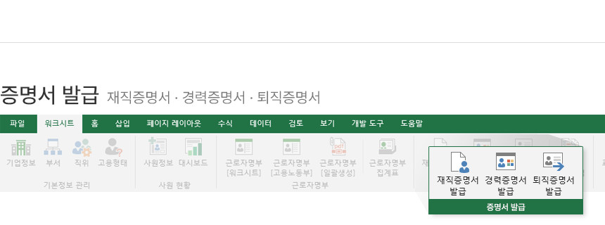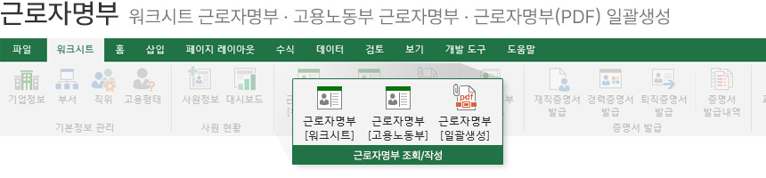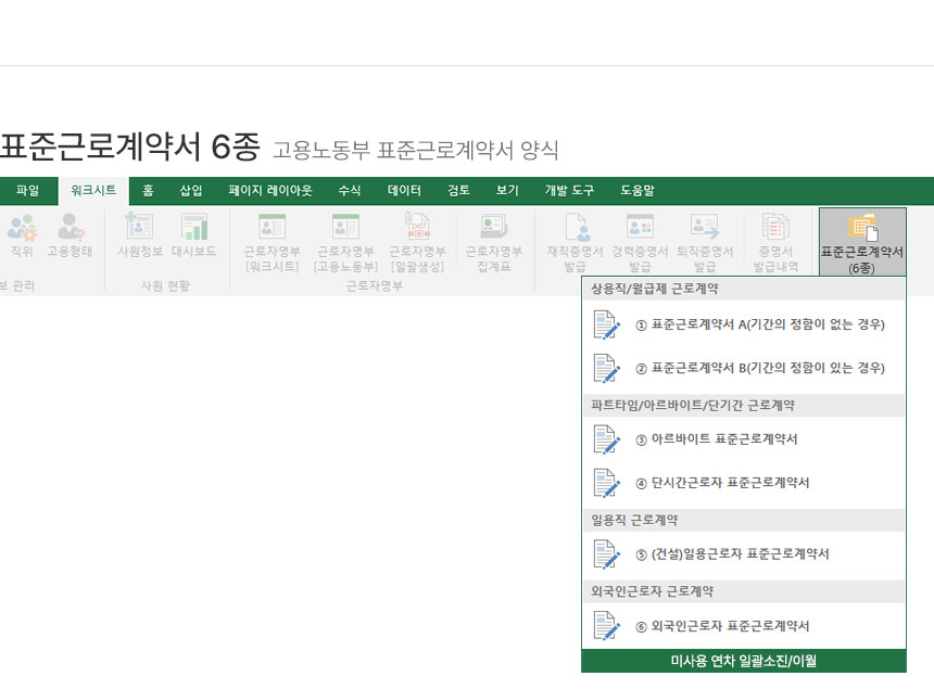 인사/총무 필수 업무템! 근로자명부, 재직/경력/퇴직증명서 발급과 표준근로계약서 6종을 모두 하나의 파일로 관리하세요!