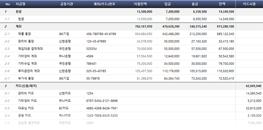 [회사가계부] 자금관리 엑셀프로그램 55,000원