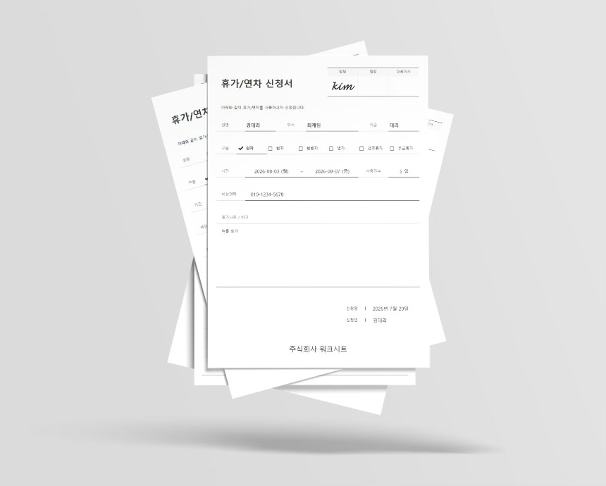 연차, 반차, 병가, 공가 등 모든 종류의 휴가 신청 시 사용되는 공통 양식입니다.