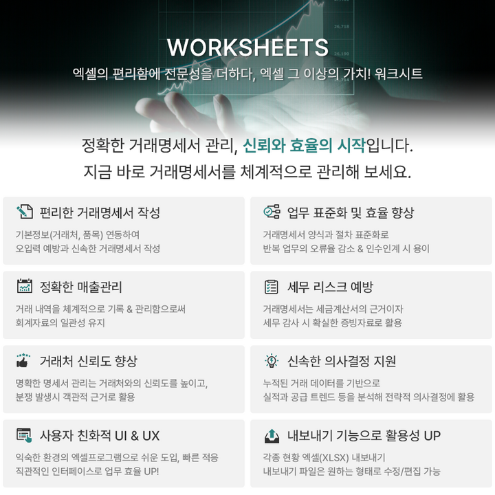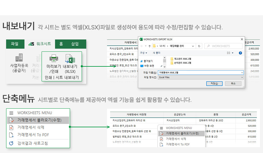 워크시트가 제공하는 상품 중 프로그램형 콘텐츠는 업무를 자동화하고 더욱 스마트하게 돕기 위해 내부적으로 매크로(VBA 코드)를 포함하고 있습니다.