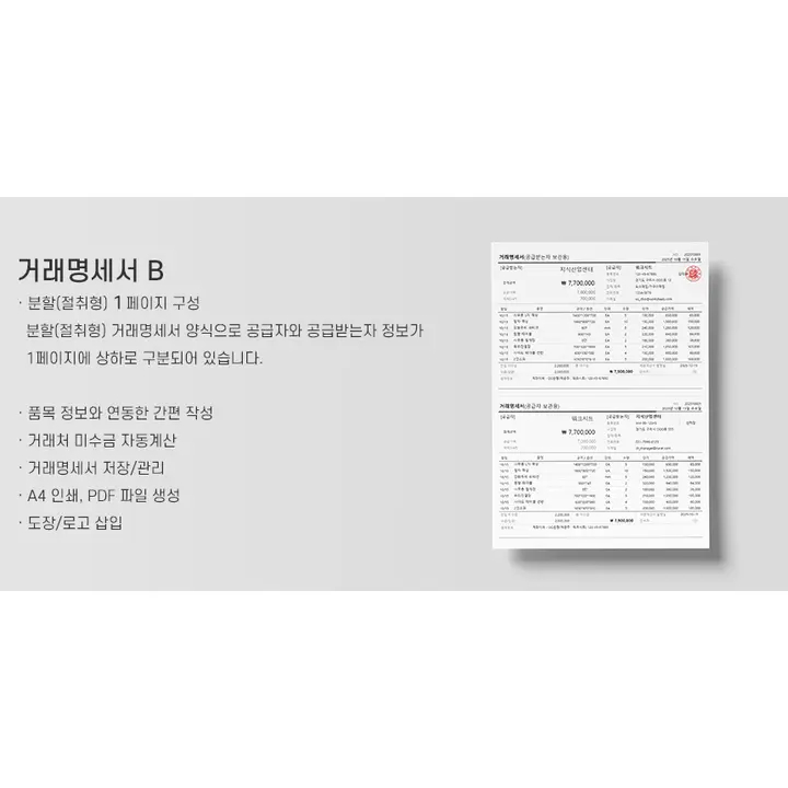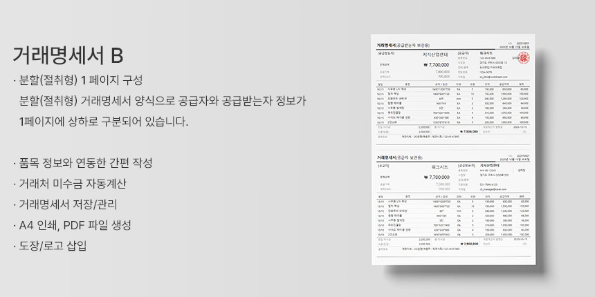거래명세서 작성 & 매출관리 프로그램 55,000원