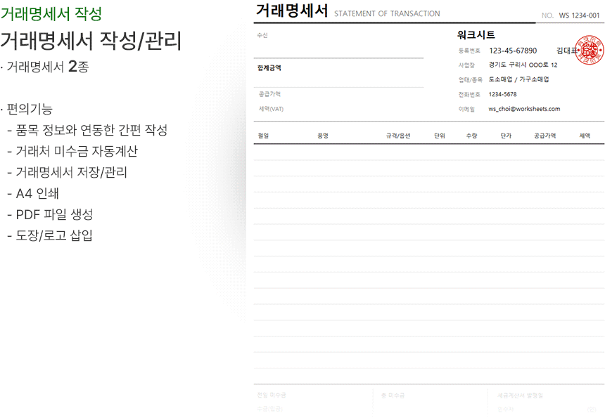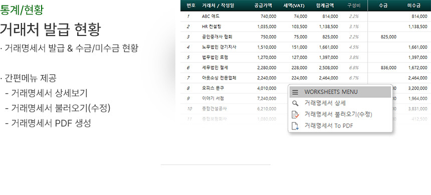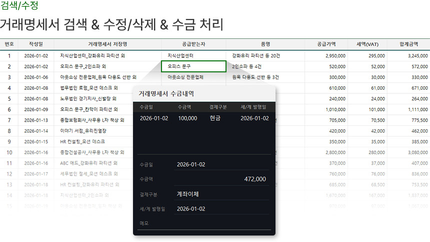 거래명세서 작성만으로 매출과 거래처 미수금을 한 번에 관리하세요!